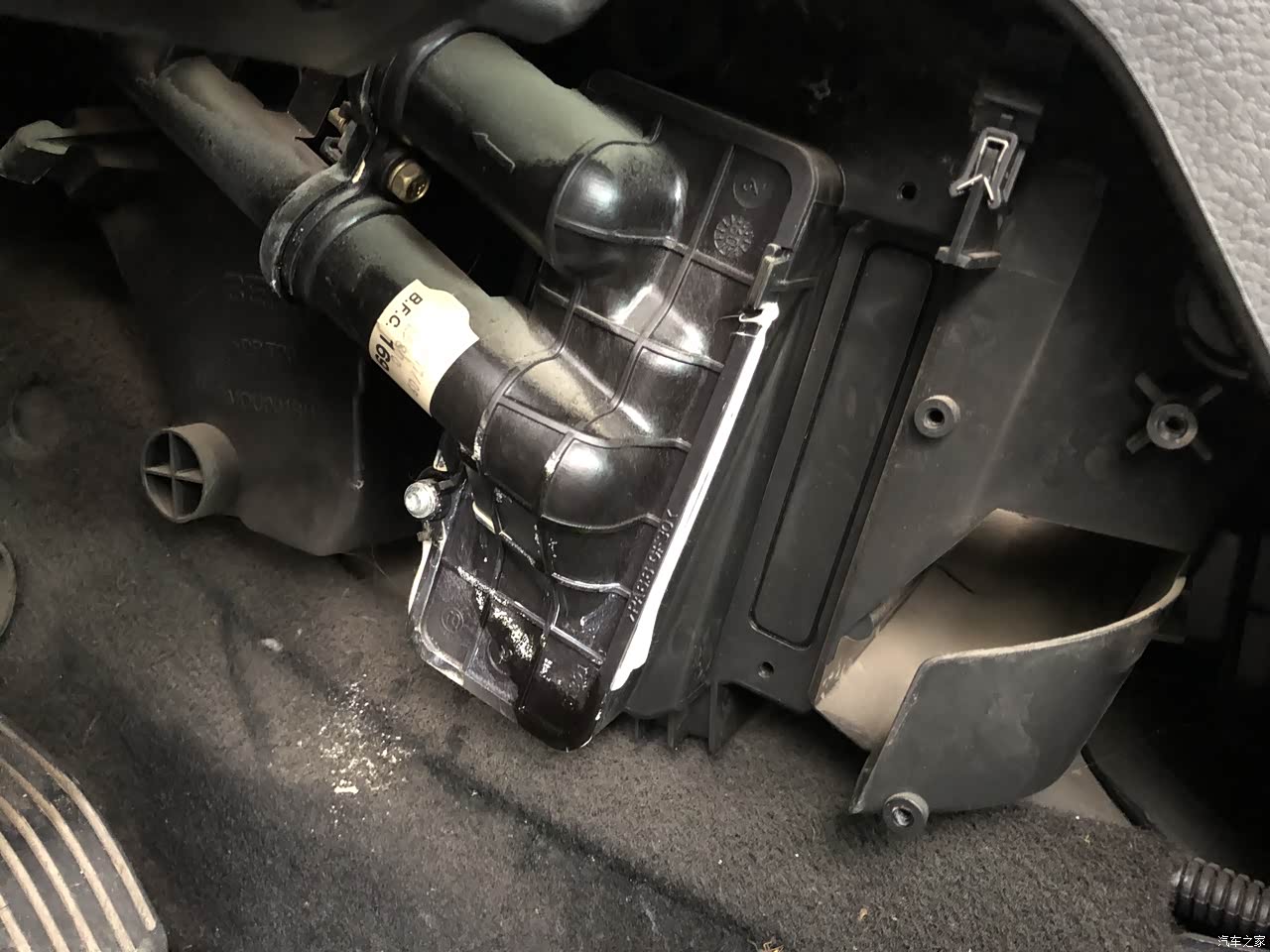春节期间停在车库10天,开了骐达回老家。回来之后把307从车库挪出来,点火困难,要给油,不然会不停的抖动,持续了1分钟,车库里面全是烟味和油味,这种现象好多年前遇到过一次,在地下车库光点火就是不着车,想到论坛里有过这种方法点火时加点油。前天无意中发现驾驶室脚垫下方有绿色液体,估计防冻液漏了,打开机舱盖,防冻液壶里面光了,min刻度以下,估计漏了500毫升最起码了,后来换了暖水箱密封圈,暖水箱的防冻液倒掉,正好家里有1.5升备用,全部倒进去正好在min和max之间。