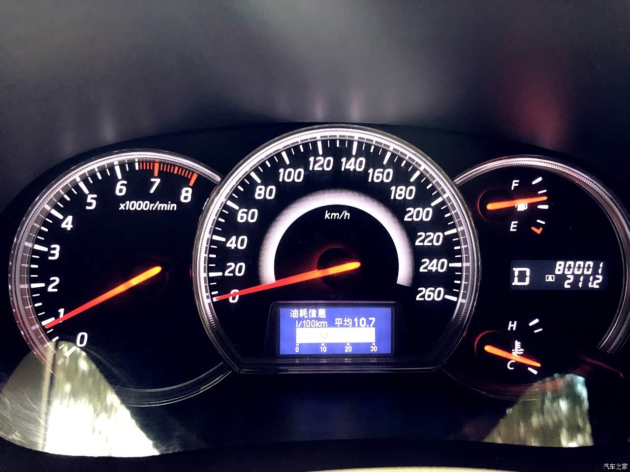 表显油耗10.7L,实测油耗在11.5L,基本市区道路居多,冬季不开空调,高速油耗约7.5L左右