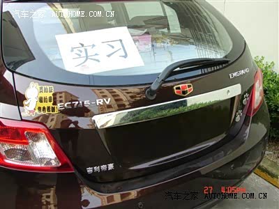 外观很大气,两厢的车型很有运动感,车头看上去特霸气,车屁股看上去很敦实,特大!再来说说腰线特美,特喜欢,总体来说帝豪外观对我喜欢两厢车的人来说特完美!