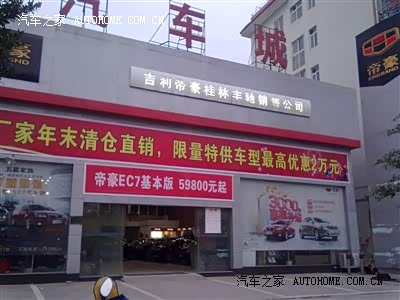 最不满意的一点就是很遗憾,没有买到帝豪三厢EC718豪华版的款式!!!EC71.8L的排量可是小生期待已久的雄厚动力啊!本已认定在年前购豪华版的,无奈的是:在2012年12月15日之前,整个桂林地区的1.8L排量的EC7居然被给卖空了!没货!要订车的话也只能等2013新款的,可纠结的是,新款的米色内饰俺们又不喜欢,主要是不耐脏。如此一来,就只能买绝版的车车,——EC715了!!!