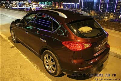 EX车系我觉得是主打优雅风格的,看上去令人赏心悦目,虽不像FX那样霸气四射,但是犀利的大灯也会让人觉得这款车不容小视。