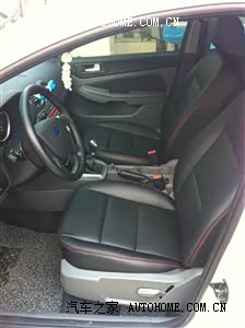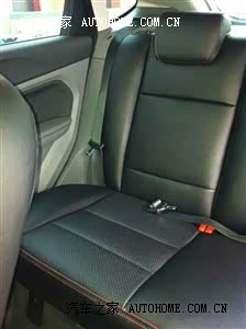 内饰就不怎么理想了,四幅方向盘很古板,同事看到就说跟他家的轻卡方向盘一样。中控那块灰色饰板是经福最大的硬伤,以后一定买张碳纤维贴上。内饰好的地方也有,中控大面积使用软质材料不错。由于购买的低配车型,原装的织物座椅就不太好看了,所以提车后果断加了真皮座椅,黑皮红线,整个车内一下上升一个档次,所以全家人对现在的内饰改装都很满意了。