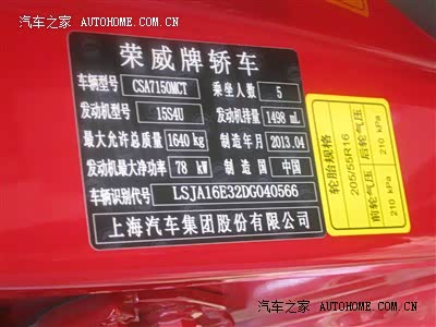 荣威350 2013款 350S 1.5L 手动迅驰版