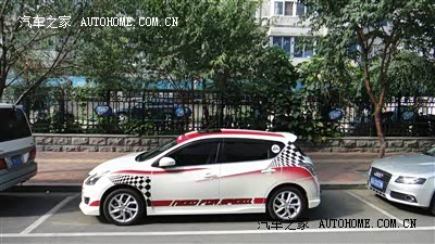 外观靓(白+包围增色不少,再加极品飞车贴更是独一无二的)。前后包围需要侵略强悍性,增加防撞钢梁