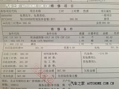 保养方面,对于一直坚守在4S店做保养的车友没什么参考价值,过质保期后,不在4S店保养了,主要是工时费太高,花同样多的钱,在外面保养可以用更好的材料。自从在外面保养,一直在用1L装金美孚0W40机油,每两次保养用7瓶。在外面做保养,目前为止只让工人换过机油机滤,空调滤芯、空气滤芯自己动手更换。最近一次保养前计划清节气门,后来用5053读的结果还不到需要清洁的开度,也就没动。按照保养周期,火花塞、汽油滤清器也要跟换的,这两件没有更换所以这两次的保养费用非常低。不过最近也在计划着抽空换掉火花塞呢。电喷不比直喷娇贵,在北京油品也算有保障,所以汽滤暂时不考虑更换。如果大家对我的保养项目有什么建议,欢迎指正。另外,这两次保养总花费为742元。