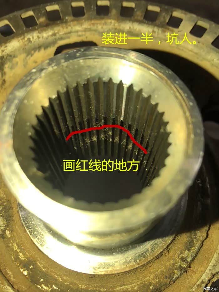 和半轴只装到一半的位置,就卡在那里,维修师傅足足拆了半个小时。