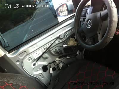 标准的大众内饰,黑色的还是挺有档次的,最起码比从外面看显高档,门板是布的,今天去包皮了,手工还可以,就是包完都天黑了,没照照片。