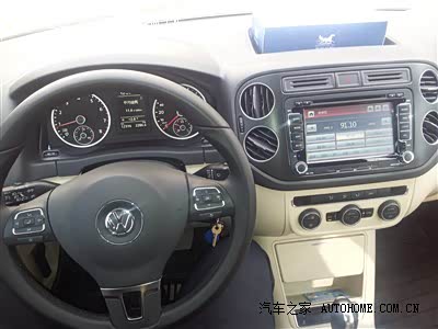 途观做的还是比较厚道的,黑色车身配白色内饰。