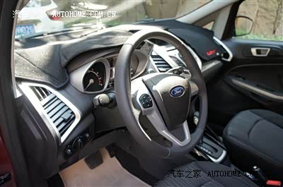 硬塑中控台,质感一般,但有嘉年华的造型前卫,科技感强,织物座椅也很时尚,毕竟13万的车,对内饰要求不能太多,但是方向拍实在有些坑爹,明明写着真皮方向拍,实际就包了一半的真皮;