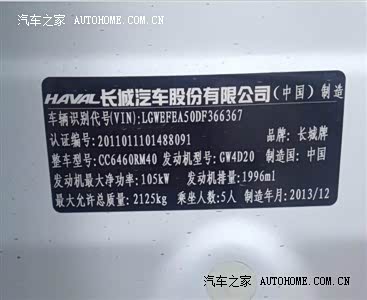 哈弗H6 2014款 升级版 2.0T 柴油 手动两驱精英型