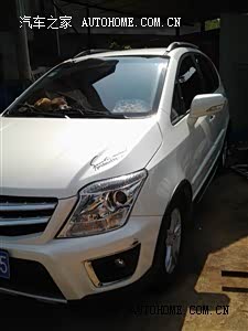 最满意的一点当属外观了,我选择的是白色,当初之所以选择白色就是因为白色看着大气,不过也不耐脏,需要经常打理洗车咯,外观看着像越野车,超赞的,而且很耐看,不过后轮感觉小了点,有那么一丝丝的遗憾,最喜欢的就是14款的加装的包围了,比旧款看起来,总感觉完全不是在一个档次上面,还有就是小二从后面看着,说实话,真有那么一点点的怪异感觉,还是那句话,个人感觉就是差就差在后轮的那个轮胎上面小了一号,以前看比亚迪s6的时候,也是那种感觉,嘿嘿。 前脸那是相当的霸气侧漏咯,每次洗完车,都要开到没人的路上好好的欣赏一番,百看不厌。说说晚上的观感效果把,由于4s送的贴膜比较黑,晚上的时候,看着超帅,玻璃跟门柱黑色熟料完全融为一体,咋一看有点揽胜极光的味道(注意:请把视线完全停留在门窗玻璃处,才有这种感觉o(∩_∩)o ) 另外,小二的仪表盘也是一大亮点,晚上开灯的效果,不错哦,加装导航后,导航背景灯是红色的,就更加靓了~