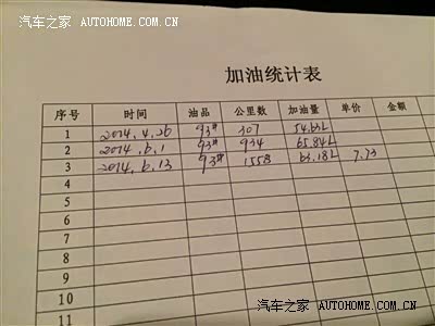 油耗是个惊艳。从买车到现在开了2147公里,市区和高速各一半,最低油耗跑到过7.7升,主要是长期跑高速跑出来的,现在我正在努力在平时开车中争取向此油耗靠拢。第一次是卖车的店家给我加了300元的油,没有计算里程数无法确定油耗,但从行车电脑上的显示是在11升左右。第二次加油后平均油耗大概9.6升左右,这和我计算的结果差不多,第三次加油后平均油耗大概为9.2升,也和计算结果差不多。第二次和第三次加油平均每箱油都跑了600多公里,平均每公里约8角钱,现在用的是第四箱油。平均下来油耗为8.6升,就这样都已经跑了589公里,这时油表显示还有一格的油量,根据行车电脑的计算估计照这个油耗跑下去还能跑上134公里,那样的话我的第四箱油可以跑上723公里,平均每公里才7角多钱。已经是非常的好了,比我以前开的1.6升的大众等几个车的油耗都要好的多。