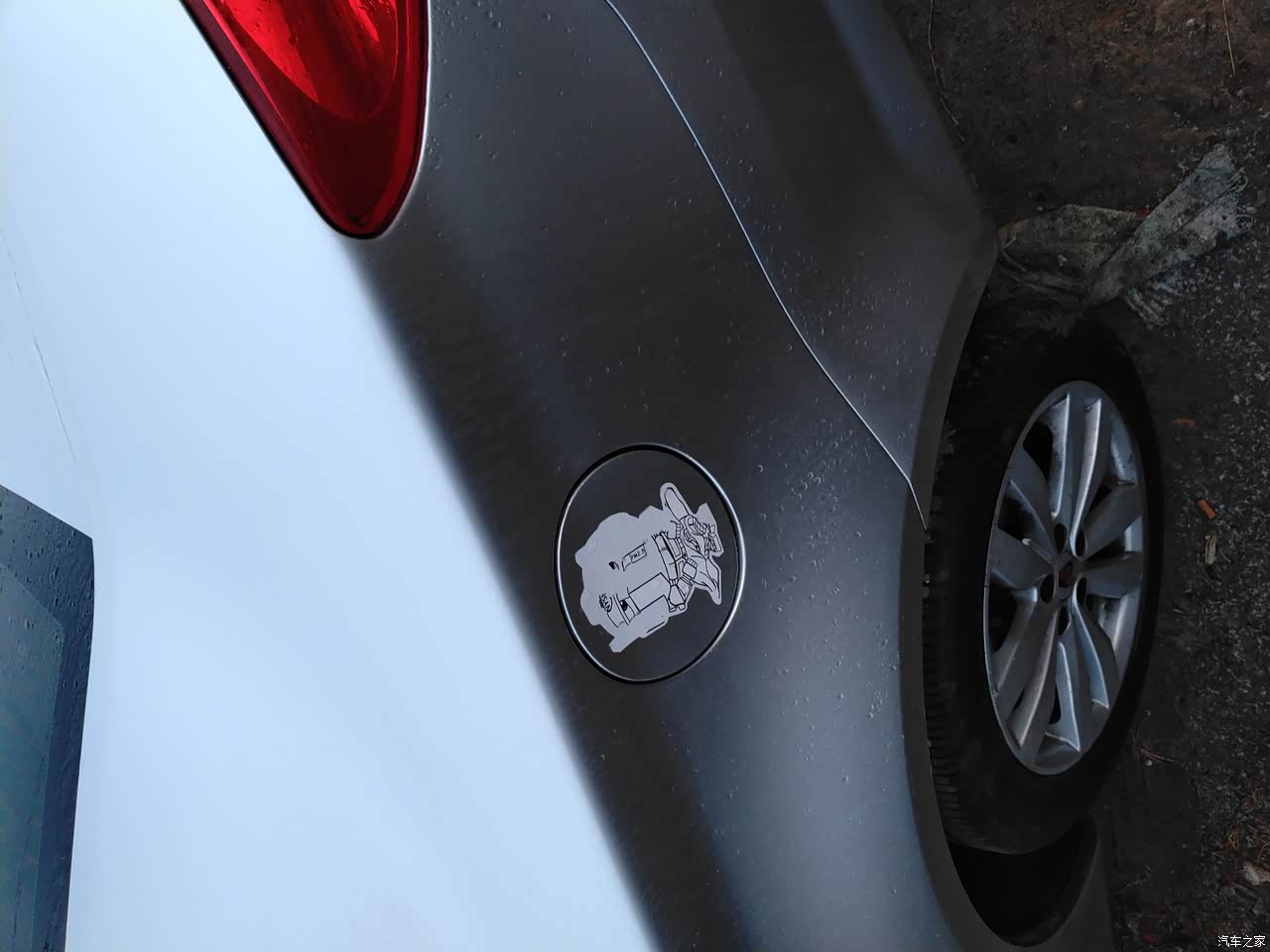 车子轮胎掉了几块皮,好在不影响正常使用。车子左后门门把手旁边不知道啥时候被碰了一下,凹进去一个小点,轻微破皮。油箱盖子上的帖子也不知道被哪个熊孩子给撕了。主驾的门把手有点松动,漆皮磨的有一块已经没了。