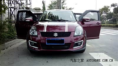 其实想给家庭添置一台小车,用于老婆的上下班代步。之前也看过雨燕,由于优惠3K,所以就一直没关注此款,主要是减配的较厉害。最近一段时间确实非常需要用车,所以买车又提上日程。当我们看到铃木雨燕20周年纪念款时,最让我满意的是酒红车身与白色车顶再加上大外包围,突显出运动感十足的外形,初次带老婆去看雨燕,一下子就情定,所以当场付全款,就没有去留意与关注其他车型。在同价位之前,看过并试驾过晶锐(1.4发动机过老,防幢钢梁也省了,优惠幅度较大)、新飞度(平顺性很好,但是没有我要的蓝色,且订车需要等)、MG3(AMT,非真正的自动)、赛欧(AMT)、K2(内饰用料不太喜欢)、瑞奕(内饰的灰色超级不喜欢)等车,最终还是执着的选择了雨燕。雨燕子虽然看起来身形不大,但是小巧运动的外形十分惹人喜爱。作为家庭的第二台用车,显得非常的灵便。 自从买了后,我们一家三口晚上出去运动 ,就首选此车,停车方便,穿街走巷,那叫一个爽呀。