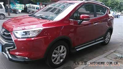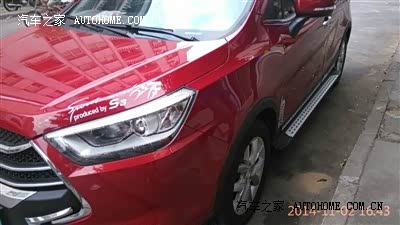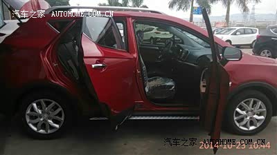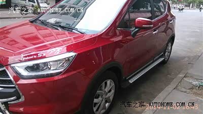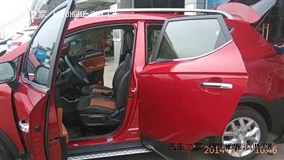 外观木有的说,造型时尚动感,颜色丰富,适合各个年龄阶段的人群,我选择的红色,热情似火,喜庆,大街上回头率那是杠杠滴,同事和朋友们都说好看,都以为是10几万的车,车顶的行李架,适合一家出游,很实用,也体现出了SUV的风格,衬托出了SUV的野性美,车旁的侧踏,衬托出了SUV的高端霸气上档次.