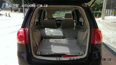 买这车,空间是没的说的,2+3+2的布局,非常适合家用+拉货。现在基本是第三排放倒用来放些货物,中间一排用来带人。中间一排的座椅能前后移动,第三排放倒,中间座位调到最后,腿部能有2拳+的距离,很不错。 如果第三排也用来坐人,会稍嫌挤了些。