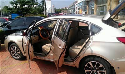买的手舒,米黄色的内饰看久了想要全黑的了。座椅不是全皮的,不过貌似2014款手舒座椅变皮质的了。如果厂家出这款车全是皮质的就好了。少花3000没选高一配置,有些后悔。全景天窗开始稀罕了一阵,后来被我贴了车顶拉花挡死了额。