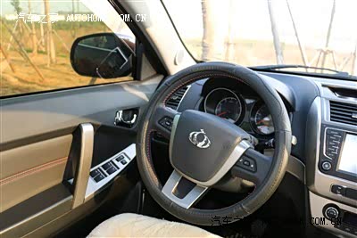 方向盘、离合器、油门都比较好。但如果不加脚垫的话,离合器肯定太高,一次洗车的时候将脚垫取下冲洗期间挪了下车,感觉离合器特高,不过平时都铺了脚垫,感觉离合器还是比较合适。操控还比较好,刹车似乎偏软,转弯半径稍大。 关于窗户:可惜只有驾驶侧窗户是一键升降,其余窗户只能一键下降,车辆解锁时长按解锁键可以将驾驶室窗户降下。要是配置成驾驶室4门窗口一键升降,停车上锁时长按锁车键4门窗户玻璃自动锁窗就好了。 说明书上没有车身稳定系统,但是汽车发动时又有图标显示,不知到底有没有?环保监测的时候原地加速时ABS介入了,不知道这是正常情况还是与ESP有联系?
