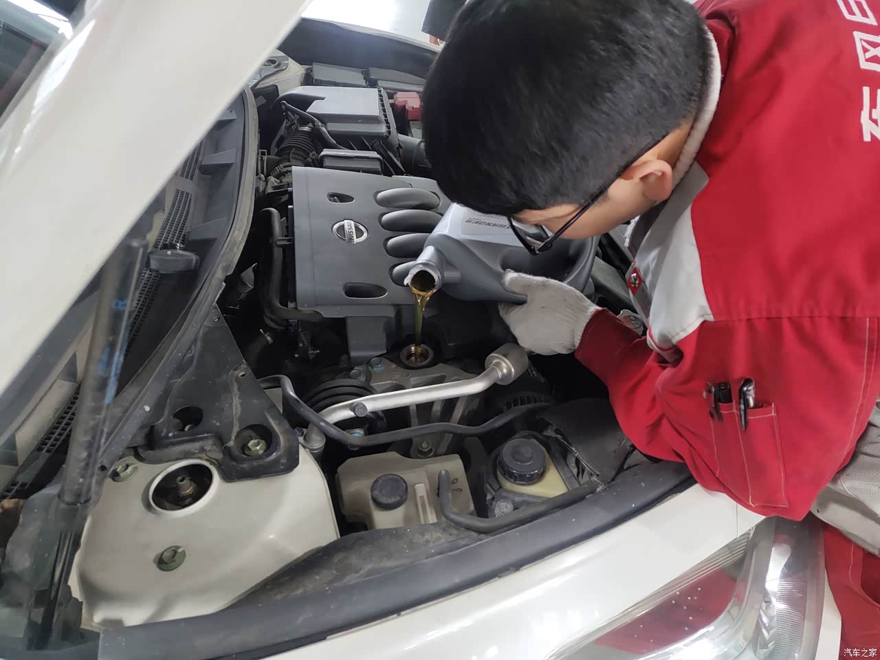 购车到现在已经保养6次了,第一次是1000公里,没有更换机油机滤,只是做了全车的检测。第二次5000公里更换了机油机滤,厂家给免费提供的,不过机油用的是矿物油,说是新车在磨合期用矿物油比较好,也没有推荐用好的机油。后面4次保养都是自费了,用的是半合成机油。售后强烈推荐全合成机油,说是天天籁车好,要用好的机油,可以更好的保护发动机,提升发动机的使用寿命,别人骐达都用全合成的机油,天籁就更需要了。没有被他们忽悠住,坚持选择半合成机油,因为好多车友在论坛里说半合成已经不错了,用全合成纯属浪费。厂家规定,3个月或者5000公里保养一次,以先到为准。要知道,全合成的机油在车辆行驶5000公里的时候,正是机油最佳的时期,这时候换掉,真的是太浪费了,不知道日产是怎么想的,现在的车谁不是半年或者50000公里保养一次。3个月或者5000公里保养一次真的太坑车友了。 一般情况下,我的车在3个月之内是跑不了5000公里的,所有我和4S店沟通下,按照公里保养,每5000公里保养一次,时间的话不超过6个月。所以我现在都是跑了5000公里在去保养。这个只是我个人保养,不建议学习,哈哈 ! 说下我了解的半合成和全合成机油的区别:半合成机油和全合成机油是机油的两个分类。 二者最大差别在于∶全合成油使用的温度更广,使用期限更长;同样的油膜要求,合成油可用较低的黏度就可达成,而半合成油就需用相对于合成油较浓的黏度才可达到如此要求。换句话说,在相同的工作环境里,全合成油用较低的黏度就可以达到保护引擎的目的。同样,在相同的工作环境里,全合成油因为使用期限比半合成油长很多,因此虽然成本较高,但是比较换油次数之后,并不比矿物油高很多。 全合成机油较之半合成机油具有以下特点: 1、全合成机油有更好的高低温性能; 2、有更长的换油周期; 3、适合更恶劣的车况。