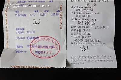油耗还算满意,磨合期主要跑重庆市区,油耗接近10L,后来调到区县就越来越低了。我把最近两次加油的小票照相上传了,一次油耗7.03L主要跑不堵车的市区和省道,一次7.62L全高速,似乎跑高速还要费油些,难以理解。总的来说只要有好的驾驶习惯,这车不怎么费油。