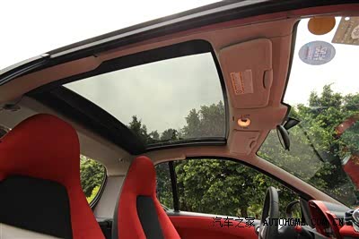 内饰可选的款式很多,内饰也是很卡通,我的是红色内饰,很酷。还有那个全景天窗,约一下MM看星星,还是很有吸引力的(虽然现在的天空你是基本看不到星星的)