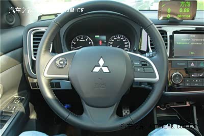 小欧的内饰在三菱乘用车系中应该是最好的了,他一改三菱一向粗略的内饰,变得精致而亲和。真皮座椅,真皮方向盘。中控台及车门手能触摸的地方均为软性材质或真皮。中控设计更显人性化,中控台稍稍向驾驶座靠近,方便驾驶员操作。七寸大屏+钢琴漆面大方而精致。仿碳纤条饰搭配足见三菱对小欧内饰设计上的真诚。