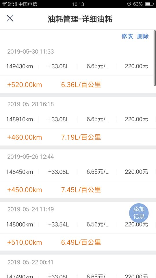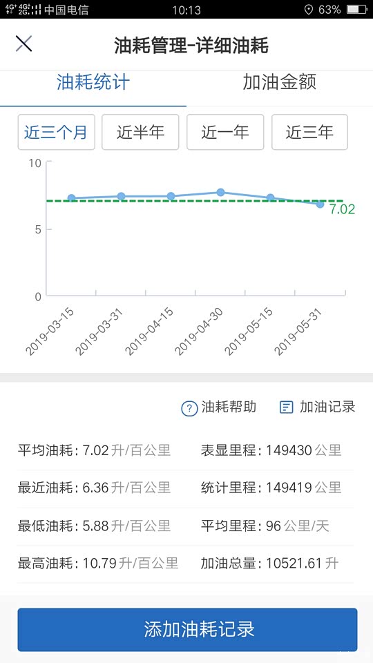 买车之后知道家家有个“我的油耗”更能,至今一直使用对于记录油耗非常方便。从提车之初的百公里10个左右(还没有适应新车)到首保前8个左右首保后7个左右,现在已经是6.5左右了,使用93或97差别不大,对于油耗还是非常满意的,毕竟车重在那了,不说最省油却也是中上等呀。