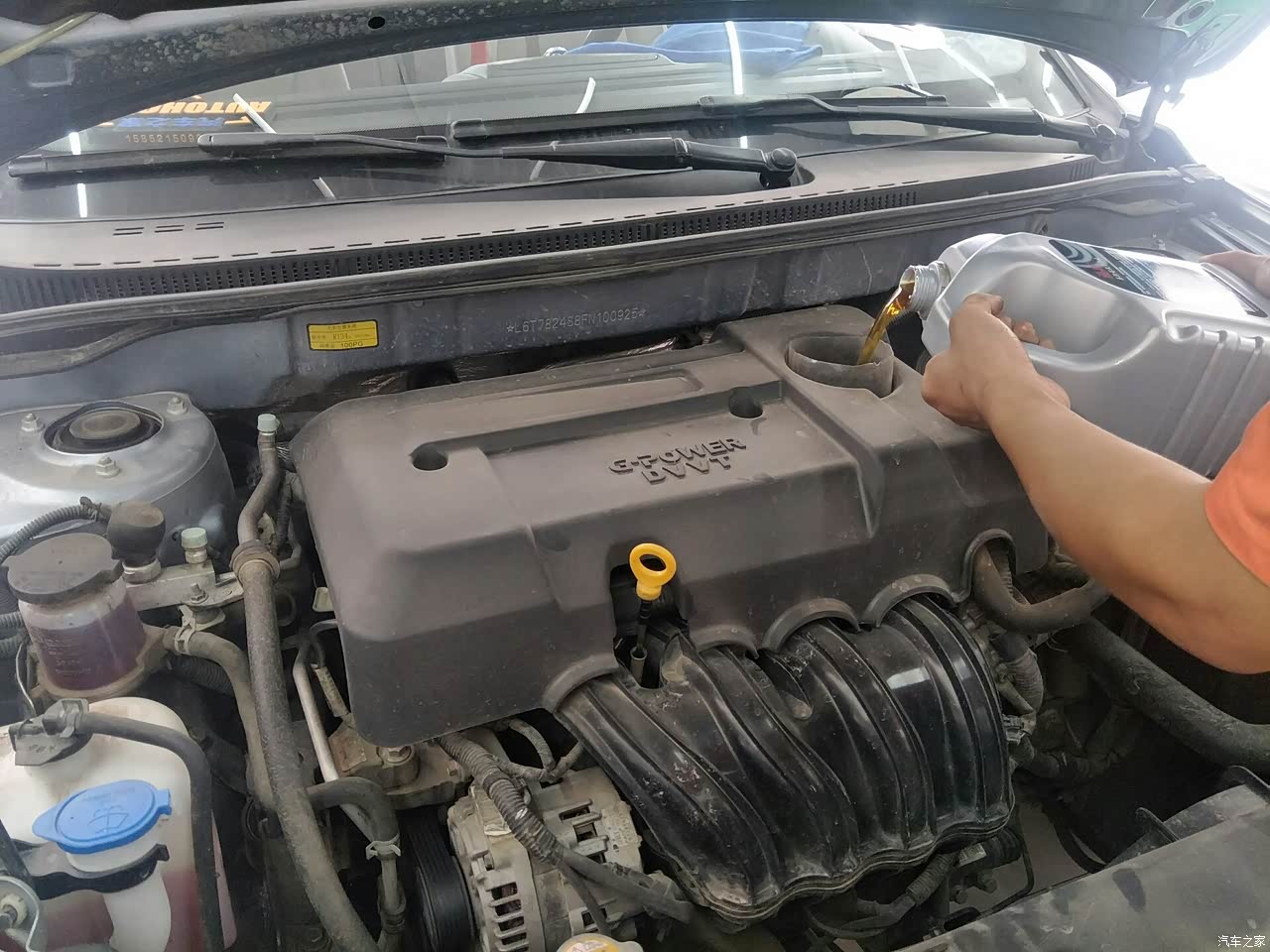 本次保养间隔只有5个月,因为上次赠送的机油不好,所以没有等到6个月或5000公里,而是提前一个月进行保养。另外本次保养还是赠送的,只是不是4S店赠送的而是保险公司赠送,从买车14年到现在只有一次自己付款一次做保养,其他的全部是赠送的哈哈,羡慕吗!去年双十一购买的车险, 保险公司赠送了2次保养一次送人, 这次自己保养看看。之前都是4S,这次不去担心脱保,后来想反正免费大不了以后外面做就去了,美孚速霸1000保养包。去了定点服务站(安德汽车服务中心),感觉环境不错,工作人员服务也比较热情规范,前台接待,填报登记,我提供了保险公司赠送的使用二维码序列号直接刷单提交,然后出工单,把车开至操作台,维修师傅打开前盖,升起车辆,放油,换机滤。顺便给检查了底盘等等。然后放下加注机油。美孚速霸10W-40(没想到这个机油不是那种1升,或者4升桶装而是208升一桶,208升呀就是那种一米高的大铁桶装的,然后抽出来再加注,唉第一次遇到这样的,看着油品颜色透明,不知如何。由于是哪个词加注过多,所以这次专门交代不要加多了。加好机油后,启动运转,再熄火检查油面在油尺中间正好。维修师傅有顺便看看机舱没问题,在清洁下。告知好了(由于是保险公司赠送的所以不能免费洗车。4S店只要保养都免费洗车)然后前台签字确认。取车上路。保养后感觉发电机声音有轻微降低,热车怠速时转速原来是750这样。现在是720这样,有降低。置于动力基本没有变化。至于油耗只能开一段时间看看了。整个过程还是可以的。