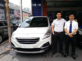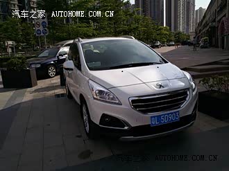 在网络上观察了大半年的车类品种了,终于下定决定要买车。 最初本来打算想买哈弗H6的,觉得外观,空间,价格都在自己的考虑范围之类。但是去试驾后,明显的动力不足,风噪很大,音质更差,花十几万买个这车,实在觉得心疼啊,还是不敢相信国产,并不是我不爱国哦。 后来又看了一汽大众的宝来,从外观上来看的话,还是不错的,但是内饰也太成熟了,不适合我这种年轻人。最可恶的就是,我想试驾,4S店里的人员,问我上哪牌,我说上外地的(解释一下:因为深圳限牌了,我社保又没满两年,所以连摇号的资格都没有,只能上惠州、东莞之类的牌了)大众4S店里的人员直接就说,现在不能试车,说店里正在整顿啥之类的,不安排试车,让我等通知吧。来的路上我就看到工作人员陪着客户去试车了,我心里那个不爽呀。。。你们懂的。。!!人家不搭理我这种小市民,那就拉倒,有钱我还怕买不到车吗,难道只有你德国车好么,哼! 后来还看了现代IX25、现代ix35、翼博、雪铁龙c3-xr、创酷、途观、标致2008、标致3008等等很多车型,这里简单的介绍一下: 翼博,我喜欢的地方底盘看起来比较高,有时候看起来比较好看,有个性,有时候看起来又十分的丑,最讨厌的就是那新车啊,我一进车里面,那鼓次鼻的塑胶味,让我差点吐了出来,连三秒都没呆,我就下来了,根本没办法试驾。 现代的车也不咋滴,价格还卖得那么贵,根本就没找出值钱的地方。 途观,贵了,虽然说空间比标致的大,但是内饰,在同等价位上,还真没有发现有车能超过标致3008的。 创酷,就一个字,丑,就这一点就PASS了。 雪铁龙,太小了,跟标致2008都没法比,虽然是一个品牌。 然后就是标致3008了,最喜欢的就是外观,内饰,操控。空间其实很够用的,但是如果能再长个十厘米,高个五厘米,那就更完美了。不过每辆车都有它的个性,喜欢就可以了,不能太挑剔了,奔驰宝马的也没有十全十美的,呵呵。 4S店送了些不值钱的东西,全车车膜、钥匙扣、脚垫、工具盒、档泥板,我软磨硬泡的,后来又加了油门踏板和迎宾踏板,唯一值钱的,送了个导航给我,哈哈。。。 第一次买车,第一次分享,也不会拍出很好看的照片,希望大伙不要喷我~~