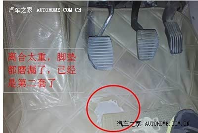 手动挡的离合器重,不是一般的重,经常踩着踩着就滑到脚心了,堵车更受罪;车是刚上市时的第一批车,订车后等了一个月才有提回来,不知道大家的是不是都这样,希望大家多说说。