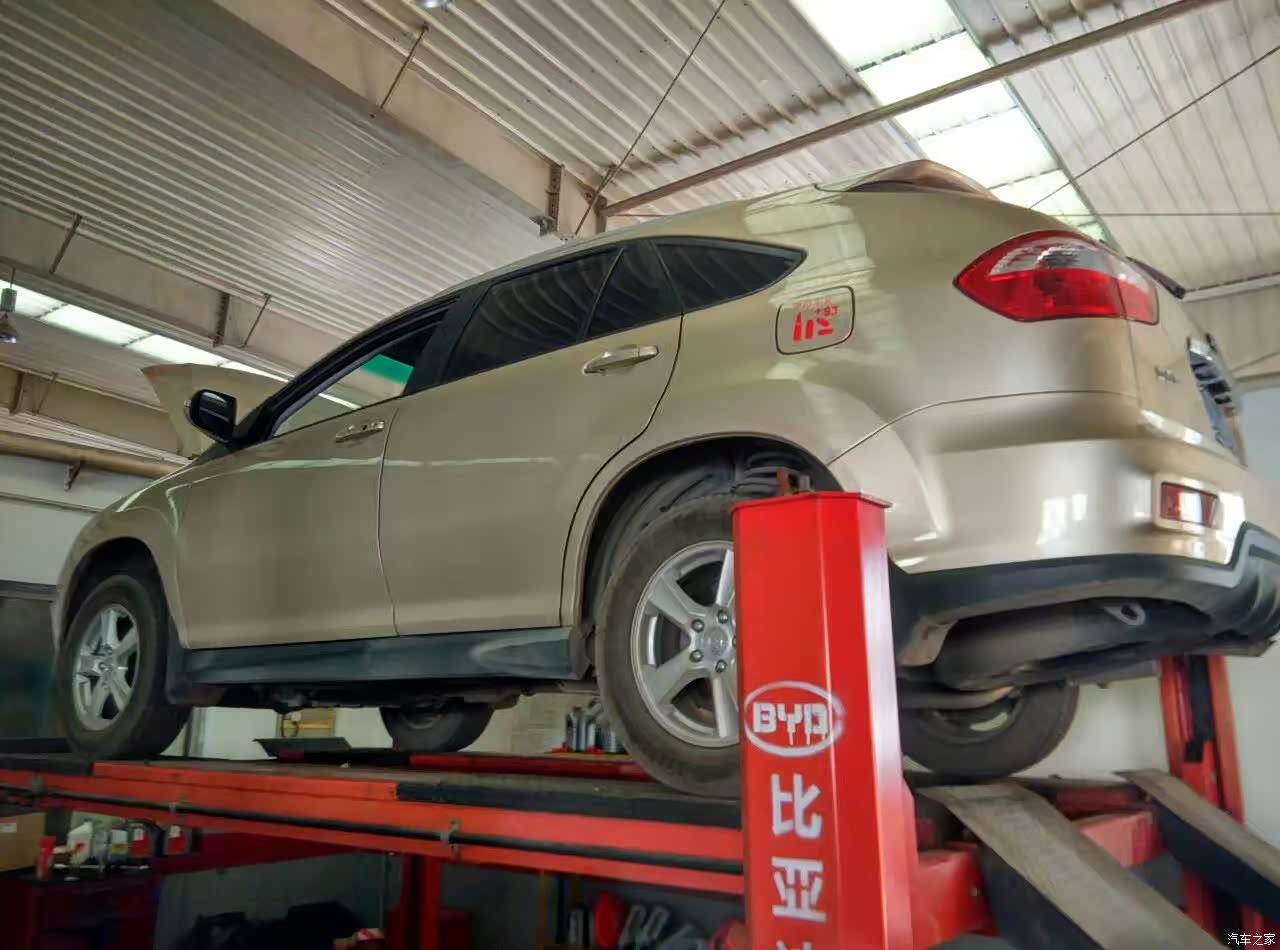 日常在4S店保养就在架子上,这比去路边摊好多了,因为在4S店上架子后,自己也能看到车辆的底部。