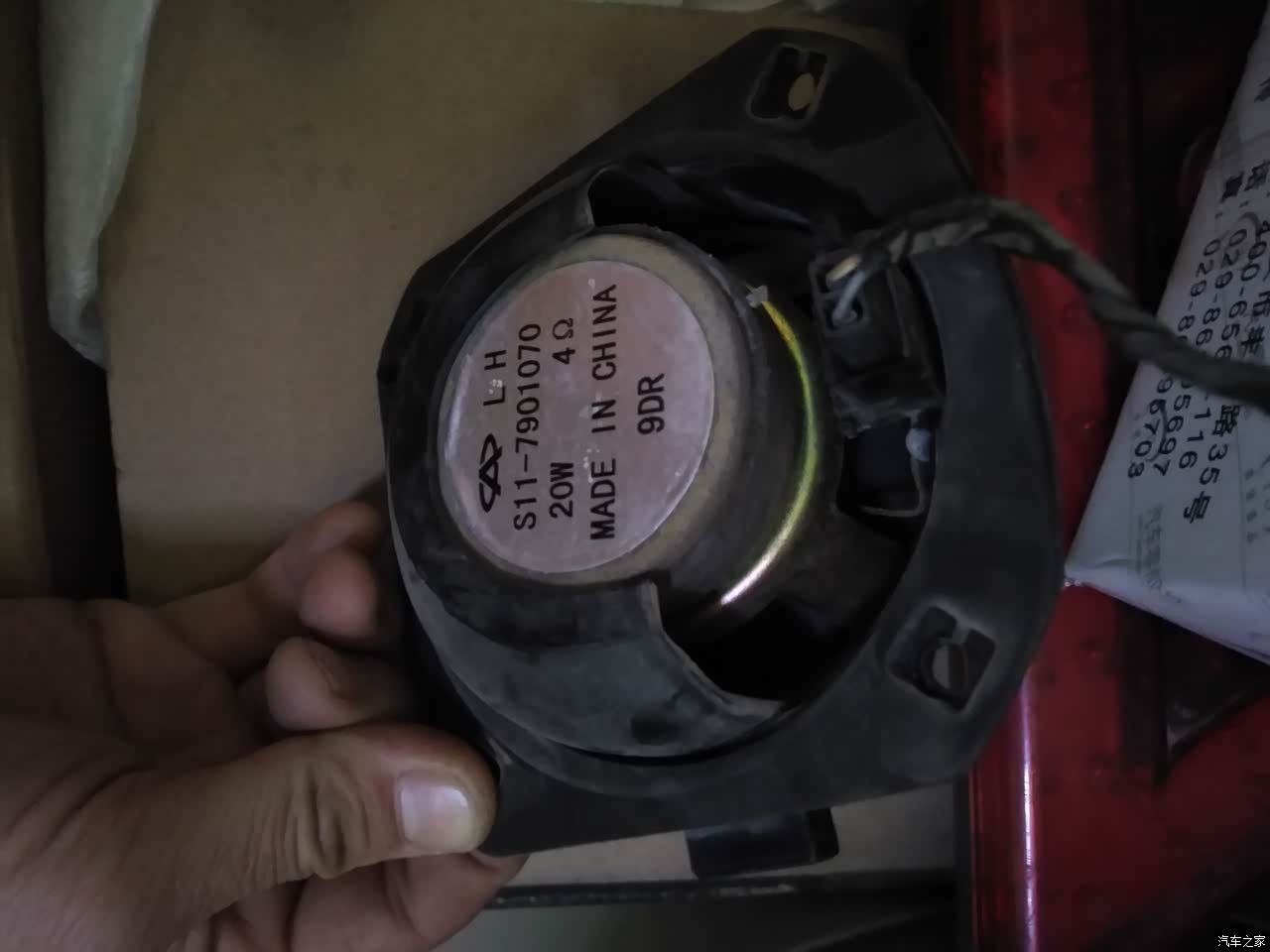 以前原车的音响太垃圾,自己改了一个起亚K4拆下来的机器。这个机器音质不错,就是QQ的原车喇叭不给力。头过年在某宝下单买了一套5.寸的中低音喇叭,加上隔音棉,花了300多。 上星期才到货。前两天没事我把车门打开了,把原车喇叭拆下来更换了新的喇叭。原车喇叭是纸盆4寸,有一个回音腔。很小很轻。新的是橡胶盆。质量不错。原来的孔有点小,位置不合适,我用角磨机把铁皮切掉了一点,又从新钻的孔,才把喇叭放进去。改造完之后试了试,音质提升了好几个档次!过瘾,这钱花的值!