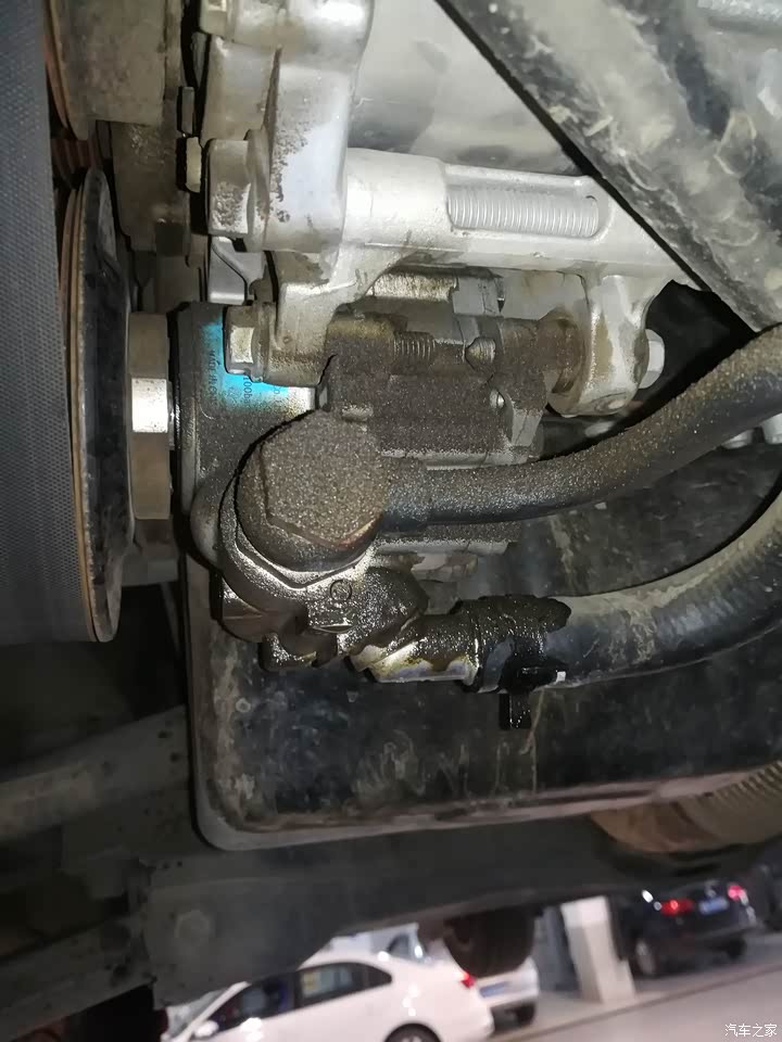 前几次保养的时候,发现转向助力泵处有油泥,是密封圈车有少量渗油,平时自己也经常查看转向助力油有没有缺少,最近保养的时候发现助力油恰恰在液位标尺的下限,给保养小哥好好说了一下,他们就去找了半瓶转向助力油,补加了一点。和保养小哥客客气气的,还是有好处的。