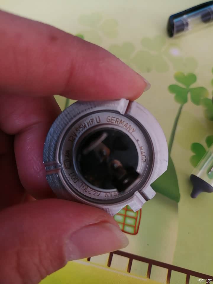 前几天,在早上上班时,大灯一打开,右前近光大灯闪了一下,烧了。前面换了一个左前近光,这次是右前。自己抽休息的时间,把烧掉的大灯更换掉了,换灯泡还是蛮简单的,就是右前大灯空间比较小,手不方便活动,但是有第一次换灯泡的经验,很快就换好了。第一次换的灯泡是在旗舰店买的欧司朗,这一次换的是找朋友车上退下来的原厂欧司朗H7,从做工看,还是原厂的灯泡好一点。原厂灯泡的字母大一点,清晰一点。