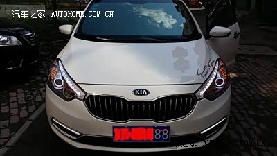 这里我最想说的是,明明k3的最大卖点是前脸和灯眉,低配为什么连最起码的灯都不舍得给装备上,起亚公司,这是把我们分阶的太明显了,你的卖点是虎啸式前脸,没了眉毛 还叫k3么,还好,我自己在大灯快过保的时候 自己加上了灯眉 还加了很多漂亮的灯。绝对比原厂的k3灯光不知道强多少倍,漂亮多少倍。比较喜欢的是k3有很多可以改造的地方,就像一步安桌手机一样,可以没事就折腾折腾,反正我现在的车除了天窗,基本和高配没啥区别了。