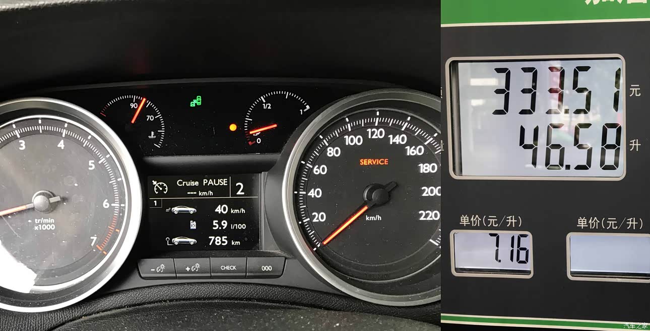 一箱油跑到这灯进入加油站时拍摄的行驶里程数据,均速41公里/小时,表显油耗5.7升百公里。