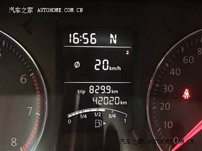 刚提车回来时油耗在10个左右,基本上都是在市区(县城,不大,还老堵车)。基本上出了磨合期,油耗就下来了,现在纯市区在8个油之间浮动,一般时速1显示26,油耗1显示7.2L,时速2显示20,油耗2显示7.7L,我一般是市区和城际快速路各一半,所以感觉平时油耗低,周末在市里堵车了,油耗1就显示在9个油左右,顺畅了7个多点,高速就省油了,匀速120下来在5.6-6个油之间。时速100的时候比较省油,也就刚刚5个油。14年结完婚去南京玩,早上7点出发,下午五点左右快到南京了才加的油,一箱油跑了820公里才加的油,当时显示还剩6L油(装的德赛西威262可以看出剩余油量)。