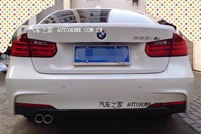 个人感觉加了M套件比普通的3系肯定帅多了,前脸和屁股与普通的3系有很强的辨识度,没这M套件还不一定这么快入手。4S店里看到过一辆Loder改装过的真是还要帅啊。只可惜328的排气还是单边双出,2边各2个不指望么,2边各1个也好看的呀。