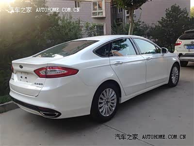 首先是空间大,车子显得很大气、漂亮。造型很帅,典雅的珍珠白,一看就是高,大,上。同事评价也很高,大家都喜欢这款车。 这几天上班一直在开,大概跑了700多公里。感觉车子开起来很稳,超车时,爆发力很强,提速很快,操控性很好,就是车里有点味道,不过我买了竹炭,3M去甲醛的,看过段时间怎么样。 后排座乘坐舒适宽敞,绝对宽敞,前排空间很宽大,而且驾驶员座椅还能调节高度,副驾驶也是电动调节,反光镜自动收回,在关闭汽车时。 外观显得很敦实,给人以非常稳重的感觉,但给人更多的是厚重感,非常满意,儿子也很喜欢。 内饰中规中矩,我很满意,二期在扶手箱里有USB接口和点烟器接口,在扶手箱后面,也有空调出风口,还有电源接口,出去玩给手机充电很方便,我又买了个USB的充电器。 是朋友摇到的号,他已经有一台车了,这个号就给我用了,8/26指标到期,我也很匆忙的去选车,经过反复比较,最终选择了蒙迪欧。主要选择因素为外观稳重,车的空间大、可接受范围的油耗、以及一些其他原因。整个订车购车提车过程非常愉快,且销售服务好。 本人用车基本为上下班(往返110公里)交通情况良好,油耗数据为9.8-11.2,满意。驾驶感受很以前的车比,好得多。 作为40岁年龄段的人,选这个车,既显稳重,又不失运动年轻。