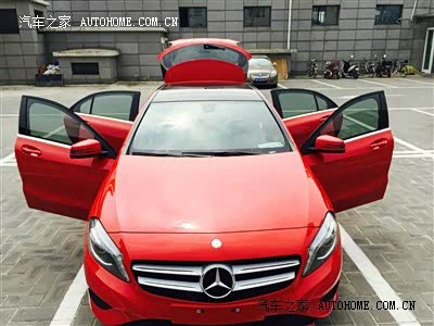 外观。红色很亮骚,回头率不低,嘿嘿。这一代A系脱胎换骨,15款的200时尚轮毂也漂亮。