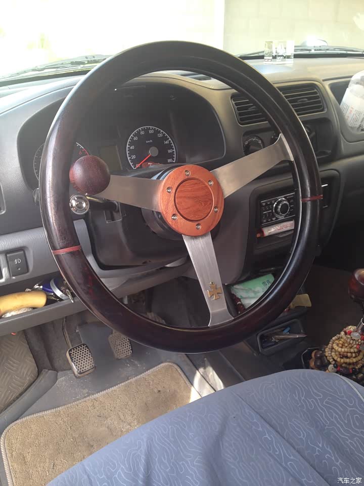 这个小车总体还是很满意的,用途广泛,空间大,外观小巧,停车方便!出去一家三人玩时,有时还带上爸爸妈妈,还可以拉上很多物品,空间是足够的!拉个货也是不在话下!这个车同时也是我的大玩具,平时爱捣鼓,车正好成了我的折腾平台,合理改装,让爱车使用更加的方便,我喜欢!前些日子自己做的一个方向盘,几乎是论坛首例,很是有成就感,朋友看了都说不错的!这次再上图,显摆一下!