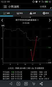 应该是7.5左右吧,因为没有平均油耗的显示,自己下了个小熊油耗侧出来的,,不知道准不准。我自己算,大概是5毛一公里吧,还没有首保,相信过完首保应该会降低的~~