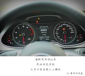 前排我1米8的个子,座椅调低从没感觉压抑。后排空间做三个成年人完全没问题,不会挤。只不过中间座椅偏硬,加上腿部中间凸起较高,坐中间的兄弟不会很舒服。后备箱空间超级大,这个必须点赞,因为我经常装大包货塞得满满的哈哈。 以上几点都很满意,不过这一万公里开下来也遇到了这么几个问题: 1.倒车后视镜下翻问题。每次倒车挂入R档的时候,后视镜会自动下翻,完事儿挂入D档后回复的位置总是比原来低,每次都要重新调整好烦。 2.倒车异响。车挂入R档倒车的时候,如果踩下刹车,底盘有时候会传来咯噔一声异响。 3.底盘太低。划过3次底盘,好在装了底盘装甲,去4S检查都只是刮到了装甲,底盘没事。现在也习惯了,过沟沟坎坎特别小心,为了帅,咱忍! 4.奥迪的保养真心贵。目前没有出现烧机油情况,但奥迪特么竟然5000公里一保养。首保3000公里时免费做的,二保8000公里做的,4S竟然黑了2200大洋!保养间隔短,还这么贵!