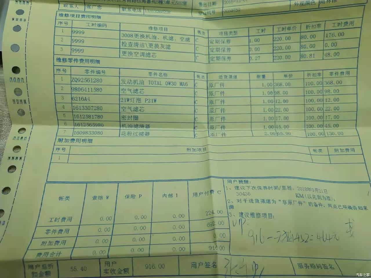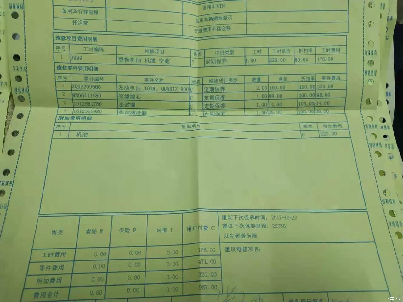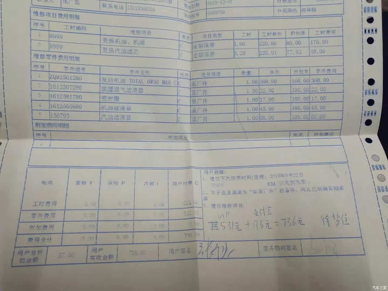 基本都是按照4S店的要求做到保养,但是看单子发现第一次居然花了那么多,难道是挨坑了?!反正已经过保了,不去4S店了!!!