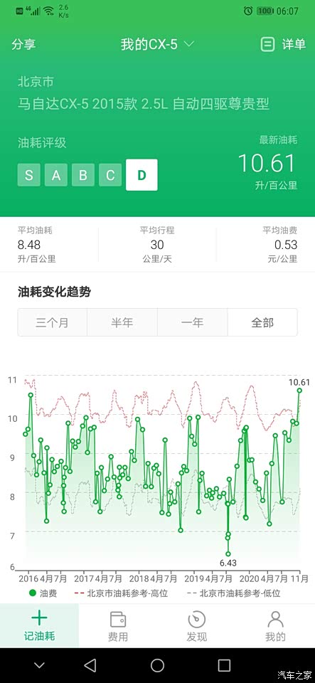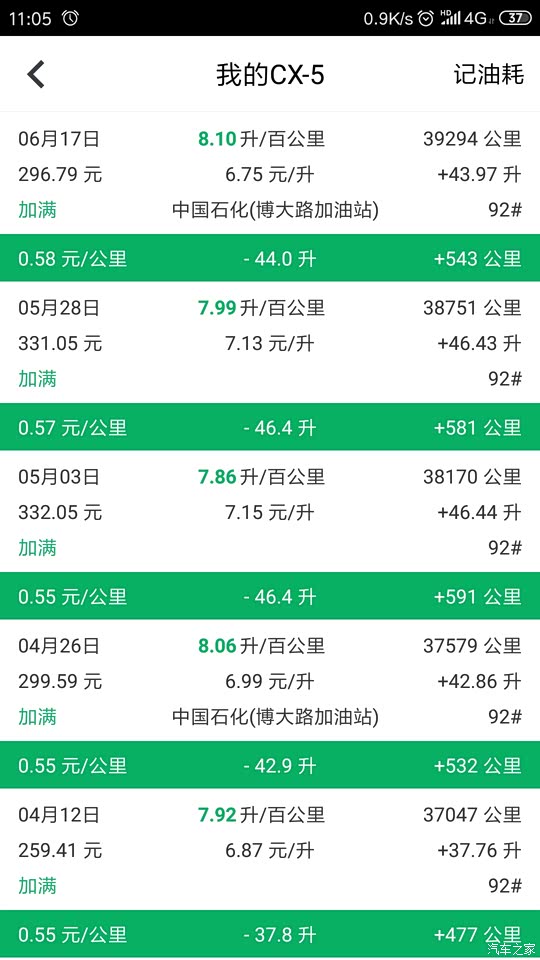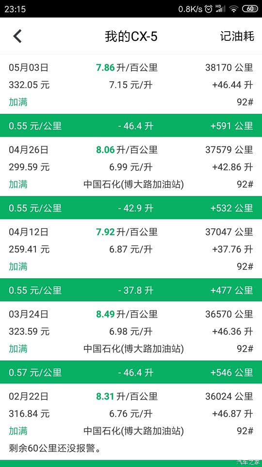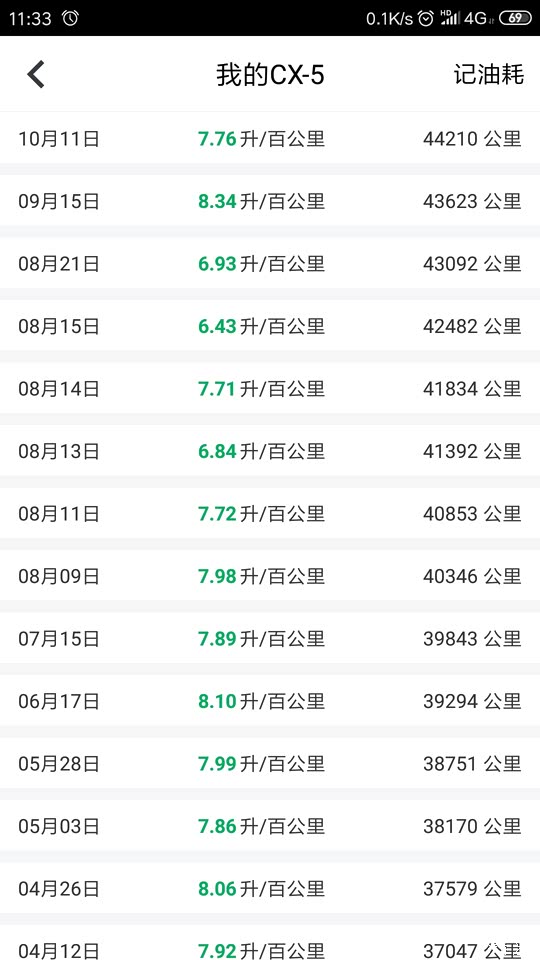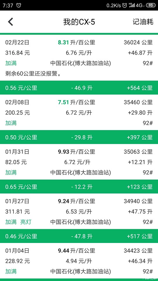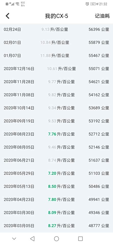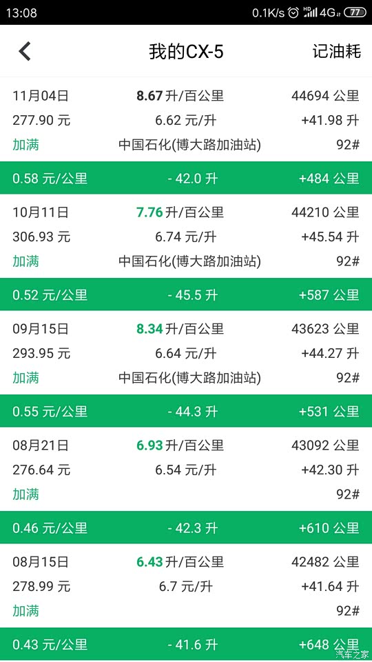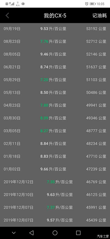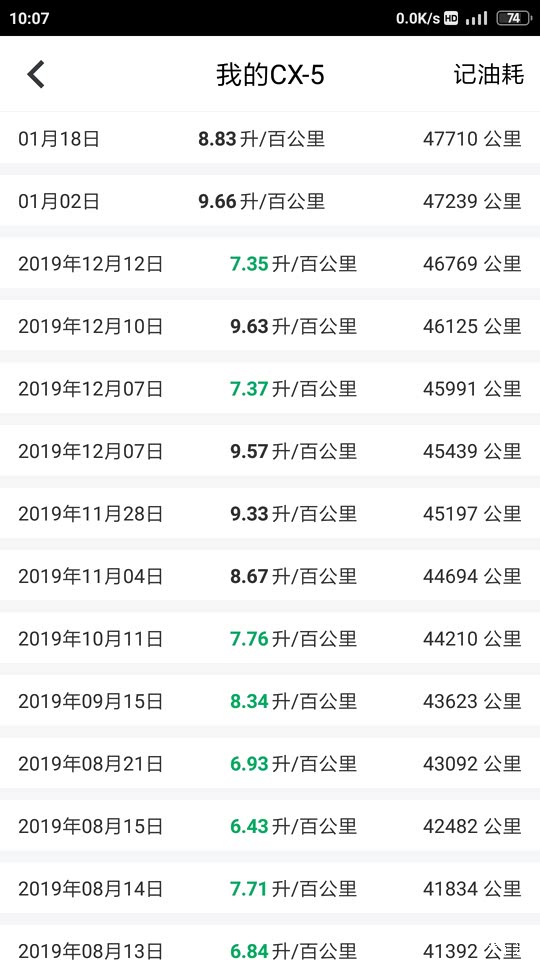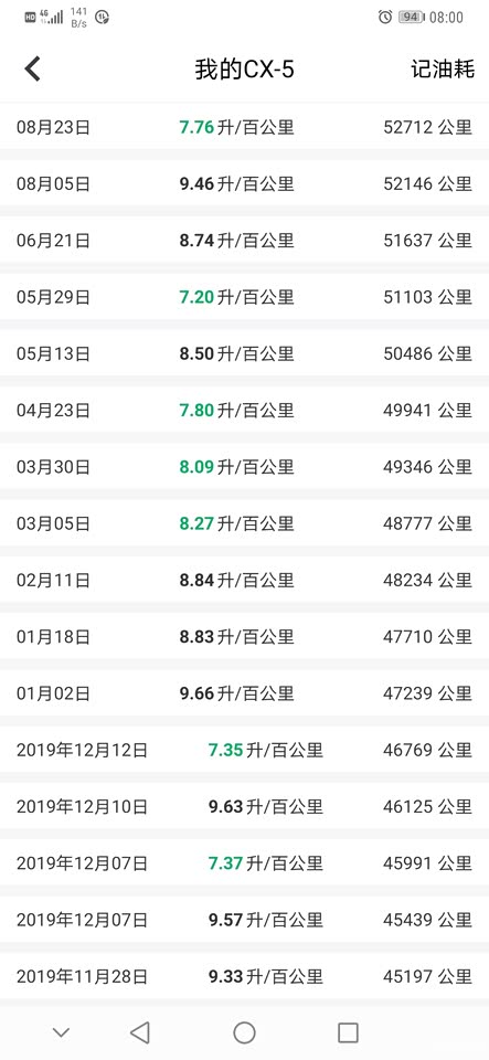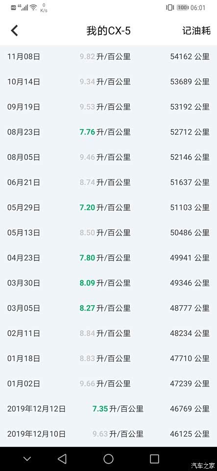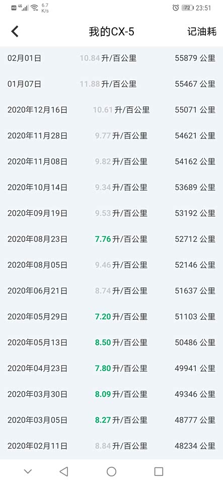 随着天气转冷,油耗有所增加,但与往年相比较还是很正常的。这些年坚持记录油耗,也就是想根据油耗的变化进行简单的车况判断。如果油耗突然增加,车子肯定是有问题的。