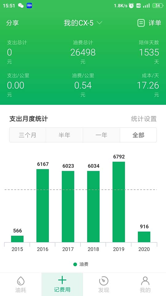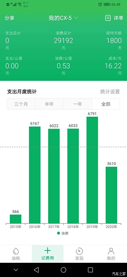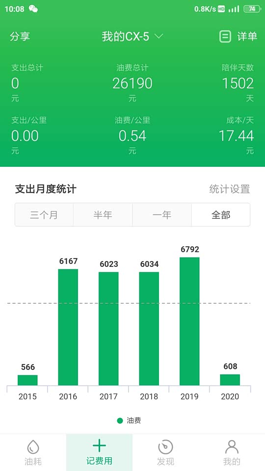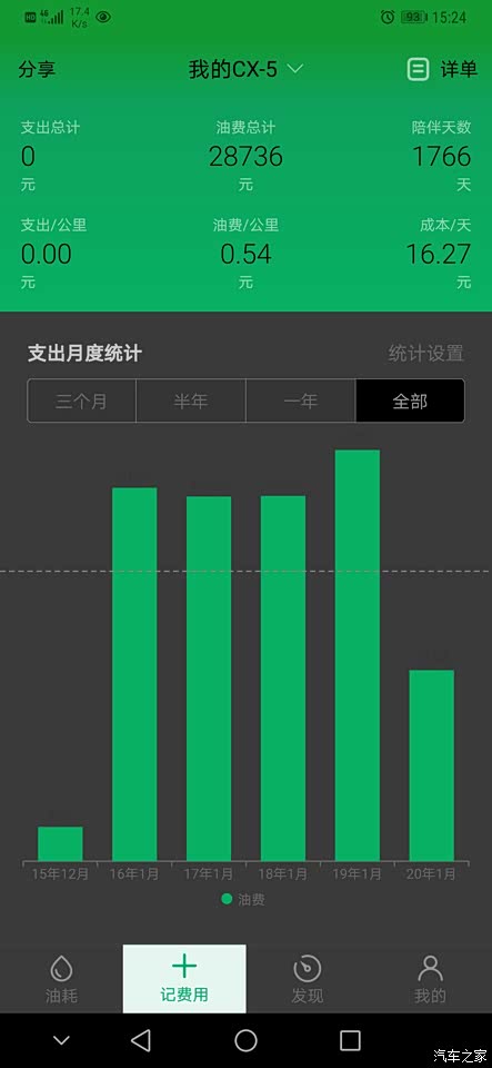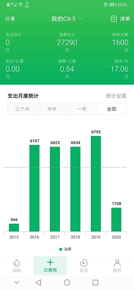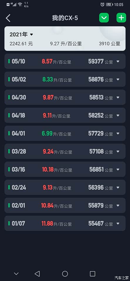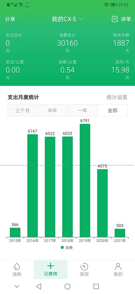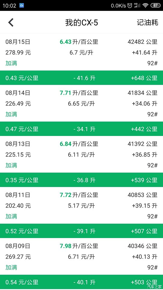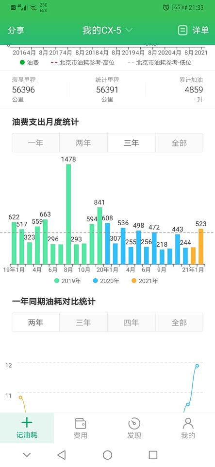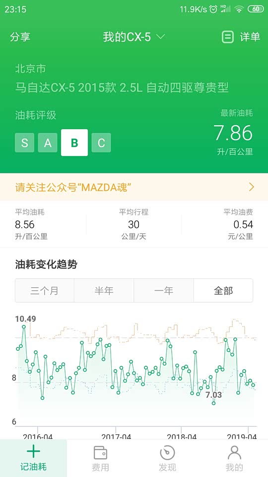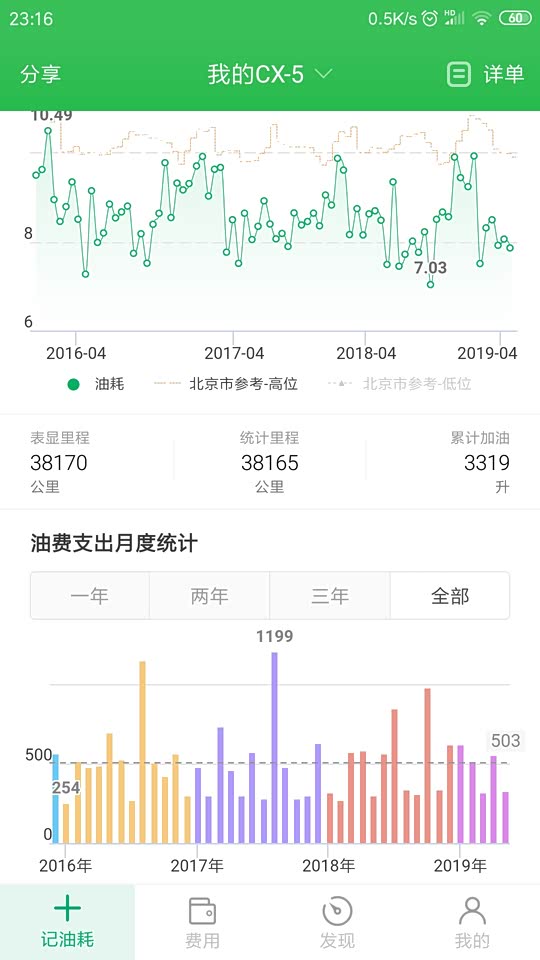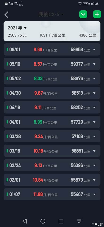 随着天气转冷,油耗有所增加,但与往年相比较还是很正常的。这些年坚持记录油耗,也就是想根据油耗的变化进行简单的车况判断。如果油耗突然增加,车子肯定是有问题的。