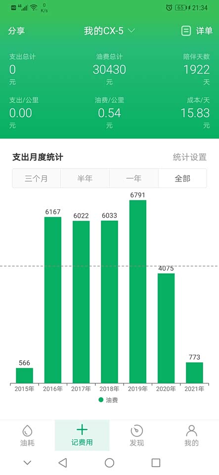 由于我上下班基本避开了早晚高峰,所以油耗还算不高吧,如果去市中心就不可估量了。如果只是上下班的话大概20天左右加一次油,平均一个月费用在500以内。