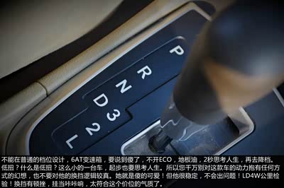 不能在普通的档位设计,6AT变速箱,不开ECO,地板油,2秒思考人生,再去降档。低扭?什么是低扭?这么小的一台车,起步也要思考人生。所以您千万别对这款车的动力抱有任何方式的幻想,也不要对他的换挡逻辑较真。她就是傻的可爱!但他很稳定,不会出问题!