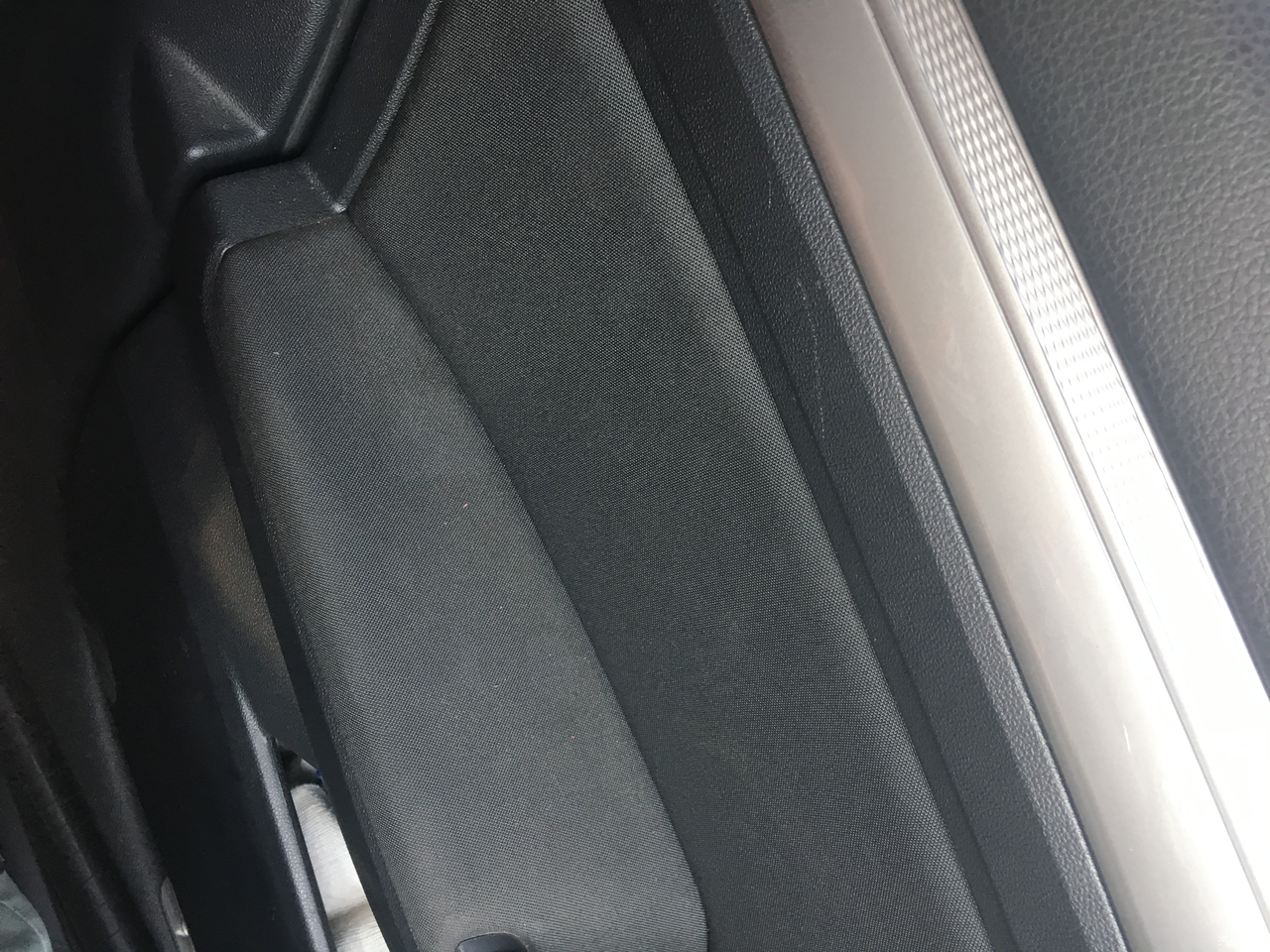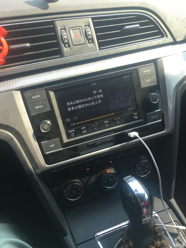 门板的这个位置撒了点儿水,就变成这样的了,我觉得后续有必要换成真皮或者超纤的去装饰一下,虽然那玩意儿夏天烫人,但是总比现在看上去这么脏要好的多啊,后期更换的280D的导航主机,本来打算为了歌舞封面换成877或者866,好消息就是carplay即将更新的ios13支持歌曲封面的这个就嗨了,不需要换了,又省了一大笔钱。