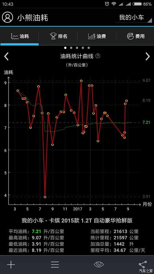 油耗确实很让我惊喜,刚落地开了一千多公里,油耗是6.8-8.2,最低的时候开过百公里6个油,算下来每公里不到4-5毛钱,挺满意得了,等过了磨合期看看能不能在市区内控制到6-7个油左右的油耗。